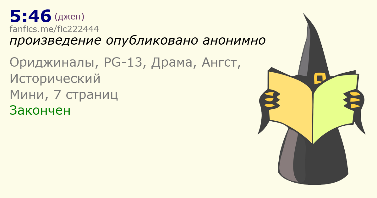 | На самом деле большая часть тропов, о которых вы упомянули, наоборот - пришли из реальной жизни в аниме и фильмы. Если честно, верится с трудом. Это как говорить, например, что Крестный отец справедливо изображает итальянскую мафию -- нет, это романтизация. Справедливо изображает итальянскую мафию, например, фильм Славные Парни. Даже если какие-то тропы были в реальности -- в аниме они изменены и усилены. И у вас именно версия аниме. физические упражнения на фоне ран Ну я бы сказала, что если у вас ранена, допустим, нога (и не в артерию) -- то адреналин действительно глушит боль. А вот если ребро проткнуло легкое (если я вас правильно поняла), то оксигинация должна быть очень низкая -- тут уже никакой силы мускулов не останется, несмотря ни на какой адреналин и силу воли, я даже не уверена, что можно стоять вертикально в таком случае. Простите, но мне осталось совершенно непонятным, о каком решении вы говорите. Решение достать телаСкажу честно, уже изначально данный текст и не должен был быть плавным Мне кажется, вы не совсем поняли, что я имела в виду......детали прошлого героев, о которых читатель не знает, всплывают как такой "бог из машины" -- только для человеческих отношений и эмоциональных моментов. К сожалению, такое в истории бывало -- поэтому у меня не всегда получалось быть на одной волне с героями. Этот эффект "внезапного душеизлияния", как раз и есть, на мой взгляд, основной минус текста. Его можно исправить, как пример, большей плавностью -- чтобы герои не сразу прыгали в "после" и казались более цельными. Но, конечно, вы правы, могут быть и другие решения. | |