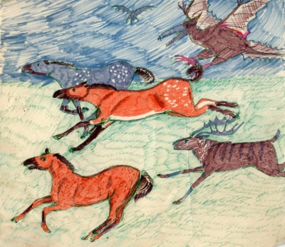 Если кто не понял, там первобытные лошади. Плеогиппусы и иже. Потому что я рисовала лошадей больше всего.